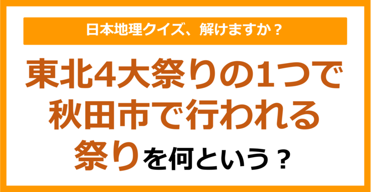 【日本地理】東北4大祭りの1つで秋田市で行われる祭りを何という?(第226問) その他 citrus 編集部 2025.08.22 SNSで盛り上がった選りすぐりのネタを紹介するcitrus。 今回は話題の情報から少し離れてひと休み。頭の体操でリフレッシュしましょう! 出題するのは日本地理に関するクイズです。 答えはこちら >
