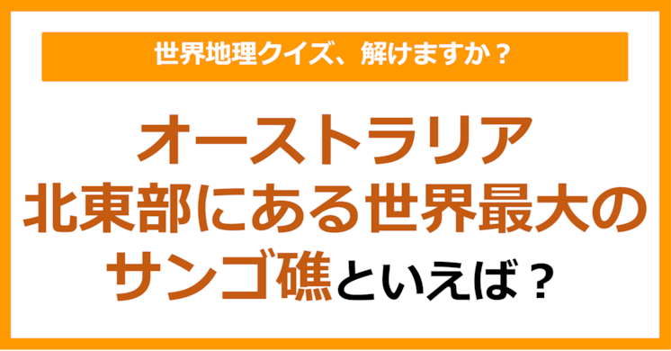 【世界地理】オーストラリア北東部にある世界最大のサンゴ礁といえば?(第396問) その他 citrus 編集部 2025.09.30 SNSで盛り上がった選りすぐりのネタを紹介するcitrus。 今回は話題の情報から少し離れてひと休み。頭の体操でリフレッシュしましょう! 出題するのは世界地理に関するクイズです。 答えはこちら >