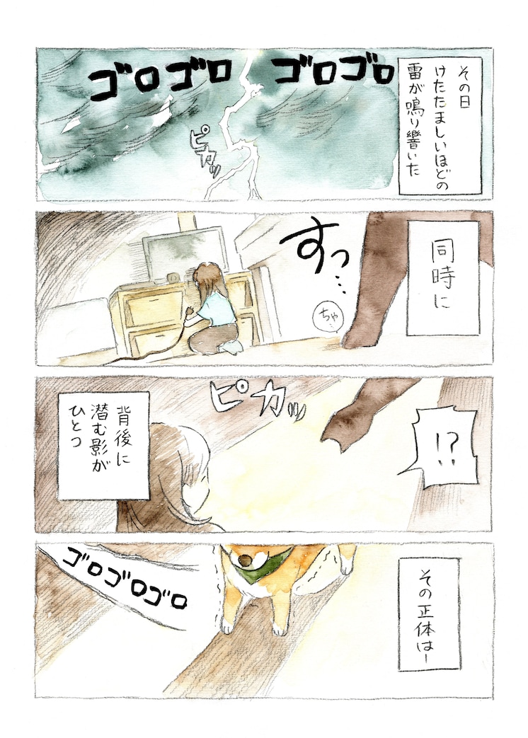 雷と戦う柴犬 行き場をなくして辿り着いたのは…「可愛すぎる」「抱きしめたい」「頭隠して尻隠さず」