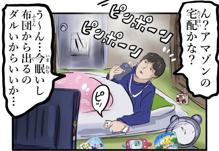 宅配便が来たものの、出るのが面倒くさかった男性。