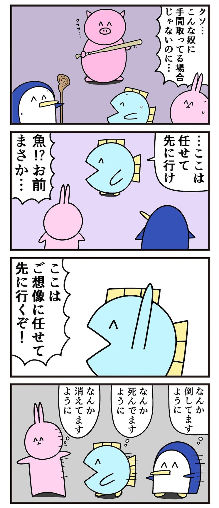 強敵を前に、魚さんが「ここは任せて先に行け」と自己犠牲を宣言。