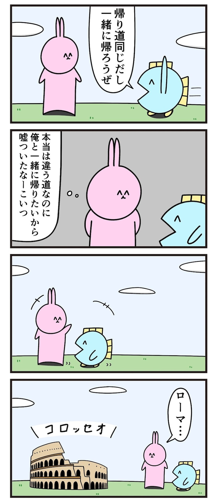 一緒に帰りたいが故の嘘だと微笑ましく受け止めたウサギさんでしたが……なんと、辿り着いたのはコロッセオ!