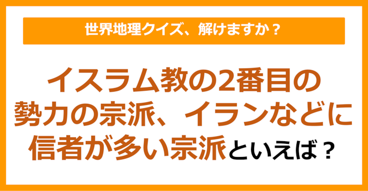【世界地理】イスラム教の2番目の勢力の宗派、イランなどに信者が多い宗派といえば?(第407問) その他 citrus 編集部 2025.10.16 SNSで盛り上がった選りすぐりのネタを紹介するcitrus。 今回は話題の情報から少し離れてひと休み。頭の体操でリフレッシュしましょう! 出題するのは世界地理に関するクイズです。 答えはこちら >