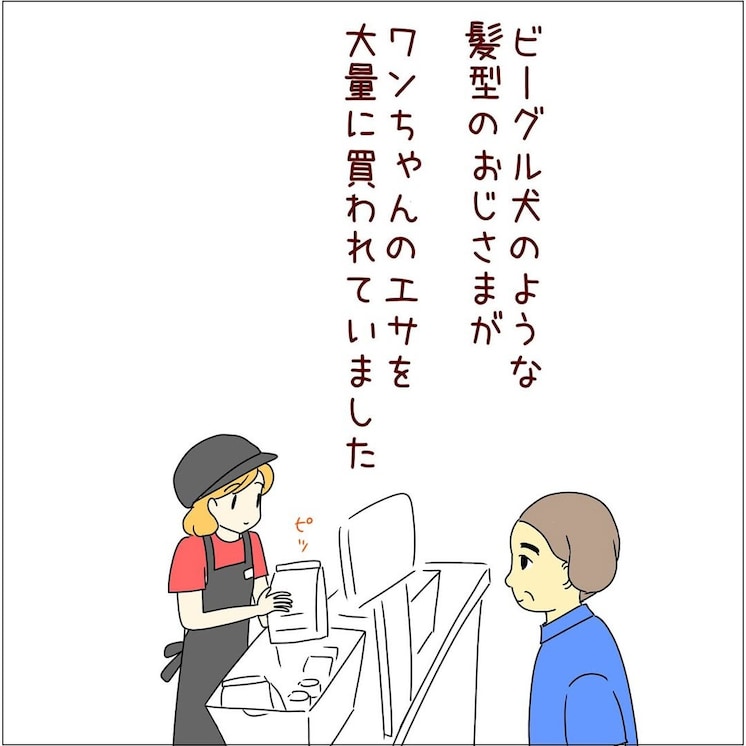 ワンちゃんの餌を大量に購入する男性に遭遇。
