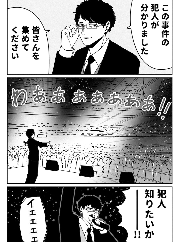 「事件の犯人がわかった」と豪語する名探偵。