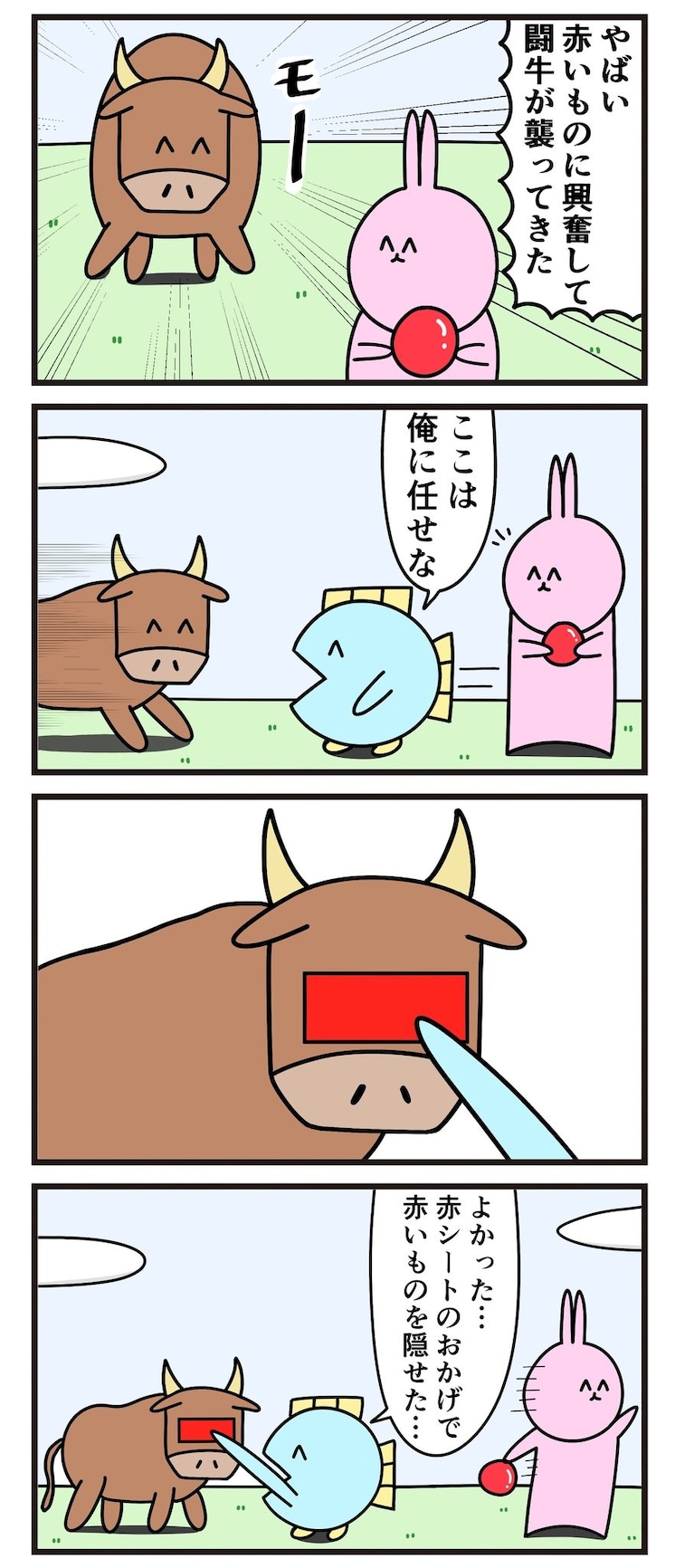 闘牛を迎え撃つべく魚さんが手にしたもの……それは、赤シート!