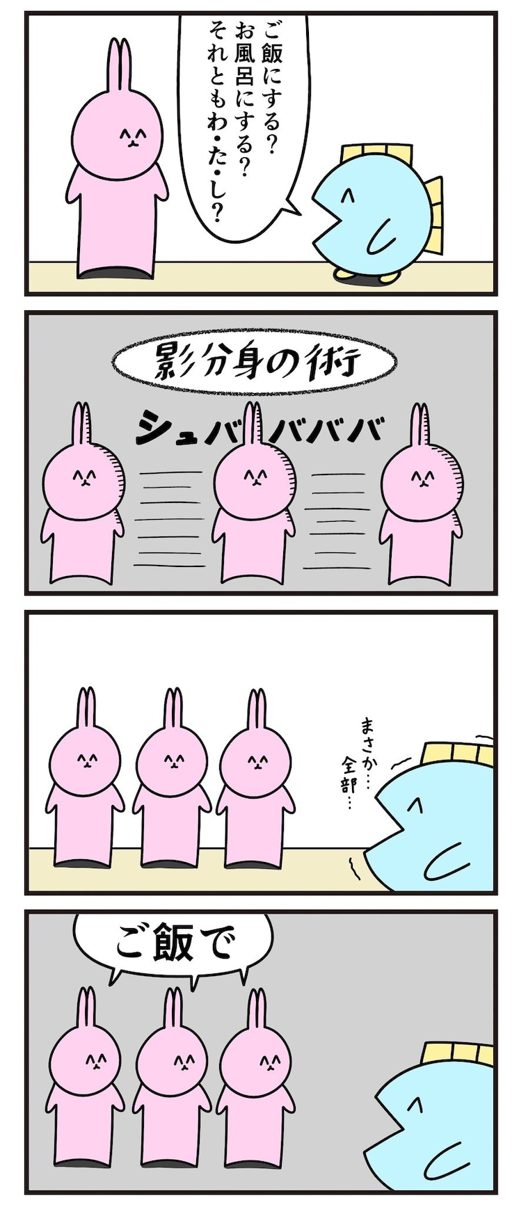 その瞬間、影分身で分裂したウサギさんに、「まさか全部と答えるのでは?」と身構えるのですが……。